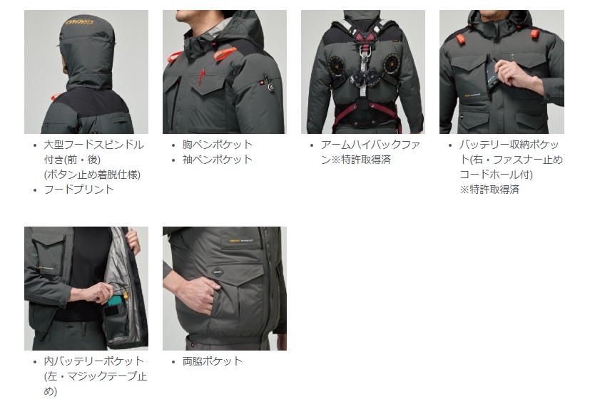 一方で、フードを使用しない場面では取り外すことで風の抜けが良くなり、より効率的な排熱が可能になります。現場条件によって最適な状態に調整できる“可変性”が、このモデルの強みです。